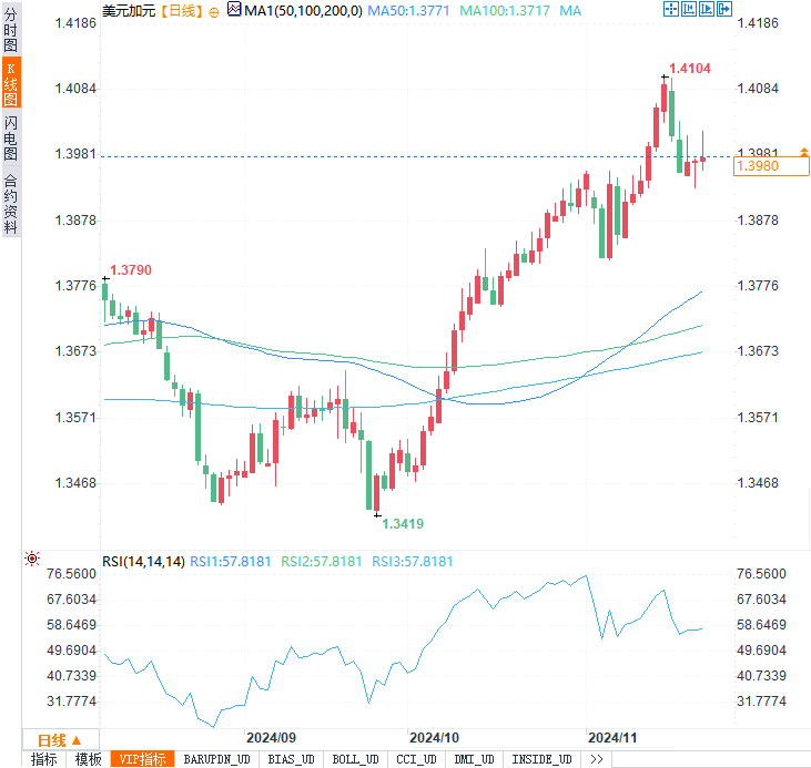 加元走势受原油市场动态驱动明显。近期原油价格因地缘政治和供需前景的不确定性而震荡,加元的波动性随之加剧。随着全球经济放缓迹象加重,能源需求预期被下调,若油价进一步回落,可能给加元带来额外压力。